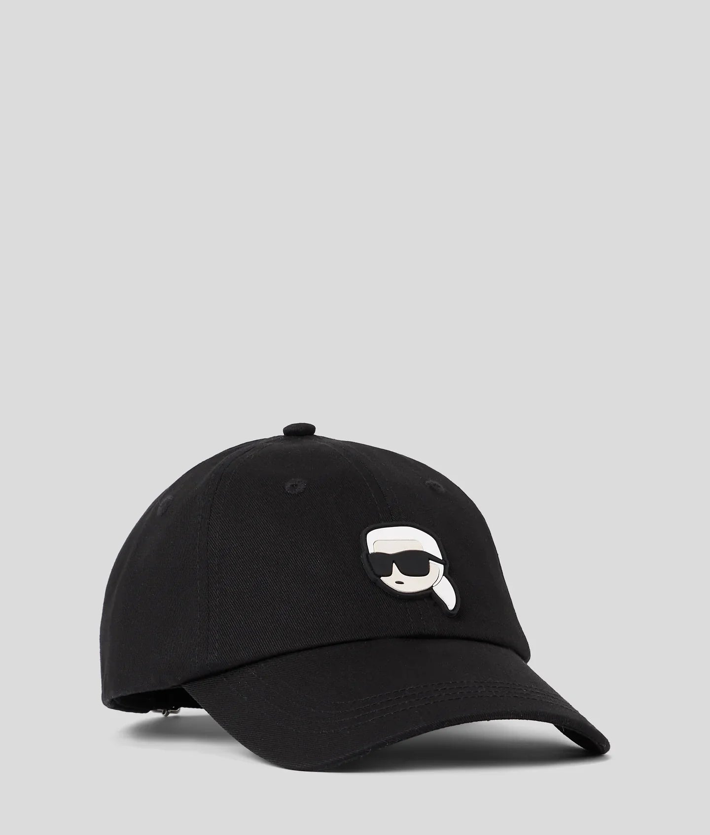 New generation IKON Karl artwork gives a playful twist to this classic baseball cap. Crafted from premium recycled materials, the off-duty staple features a curved peak and branded buckle for an adjustable fit.