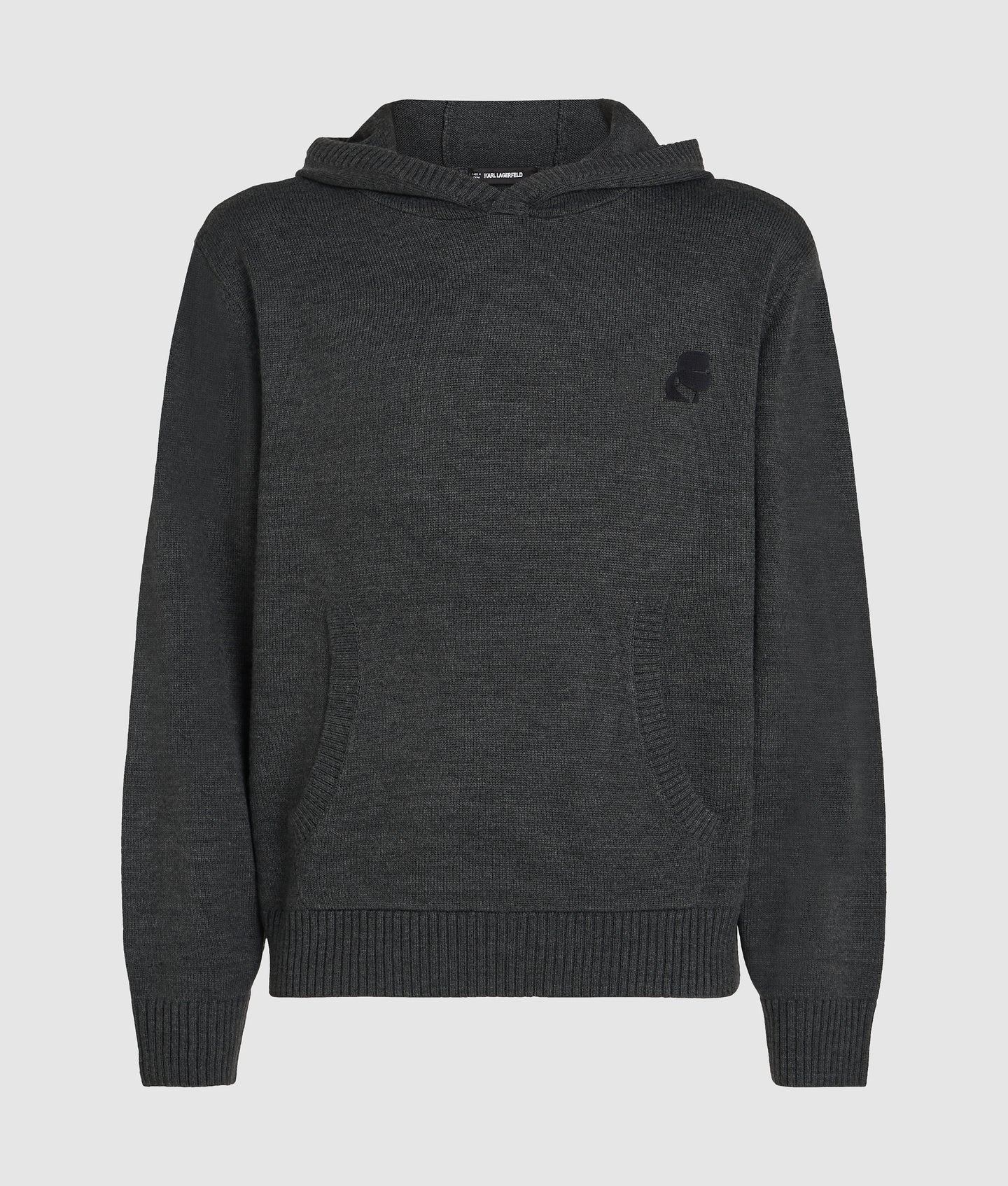 This wool-blend hoodie offers cozy warmth and a relaxed look, with a knitted drawstring hood, ribbed cuffs for a snug fit and a practical kangaroo pocket. The tonal Karl Kameo logo adds a touch of signature style.