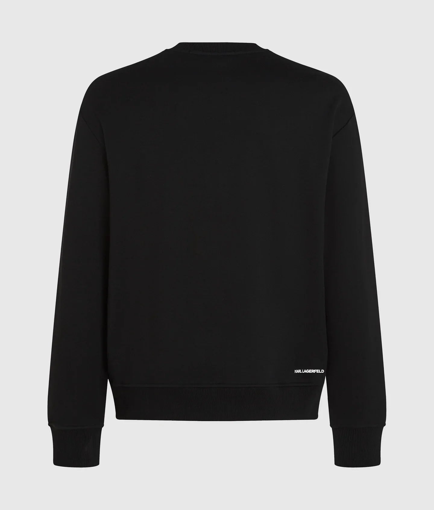 Karl Lagerfeld’s iconic portrait takes center stage on this crew-neck sweatshirt, a bold graphic set against a clean, classic silhouette in organic cotton.